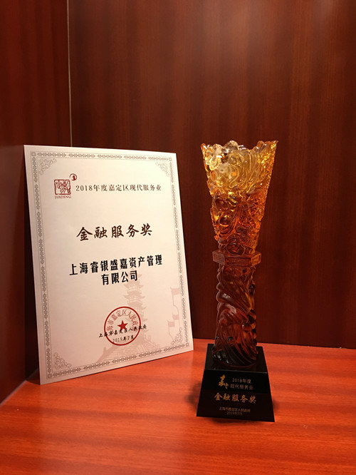 睿銀盛嘉獲頒“2018年度嘉定區(qū)現(xiàn)代服務(wù)業(yè)——金融服務(wù)獎”