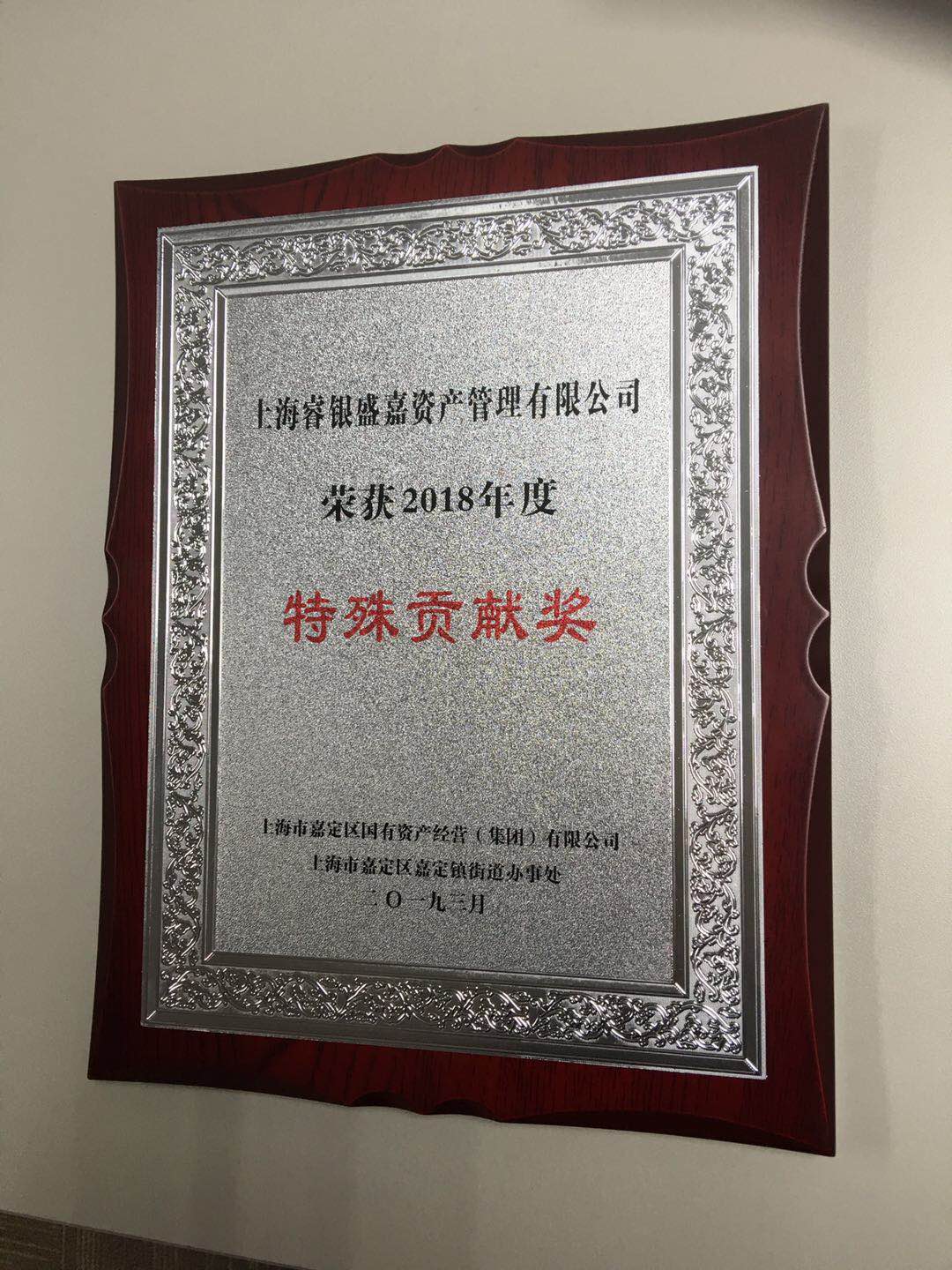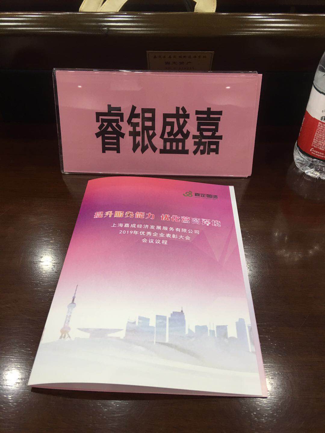 2019年3月28日下午,上海嘉成經(jīng)濟發(fā)展服務有限公司2019年優(yōu)秀企業(yè)表彰大會在嘉定區(qū)嘉定鎮(zhèn)街道辦事處舉行。上海睿銀盛嘉資產(chǎn)管理有限公司在會上獲頒“特別貢獻獎”。